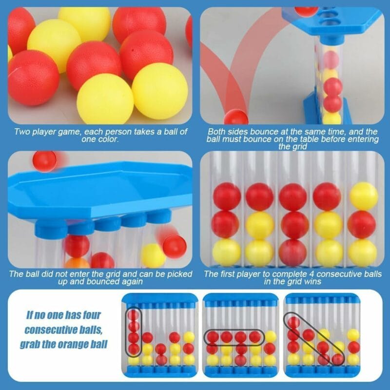 يختار كل لاعب لونا من الكرات ثم يتناوب المتنافسان على ضرب الكرات في الطاولة بحيث يدخلها في الأنابيب للحصول على صف بأربعة كرات من نفس اللون