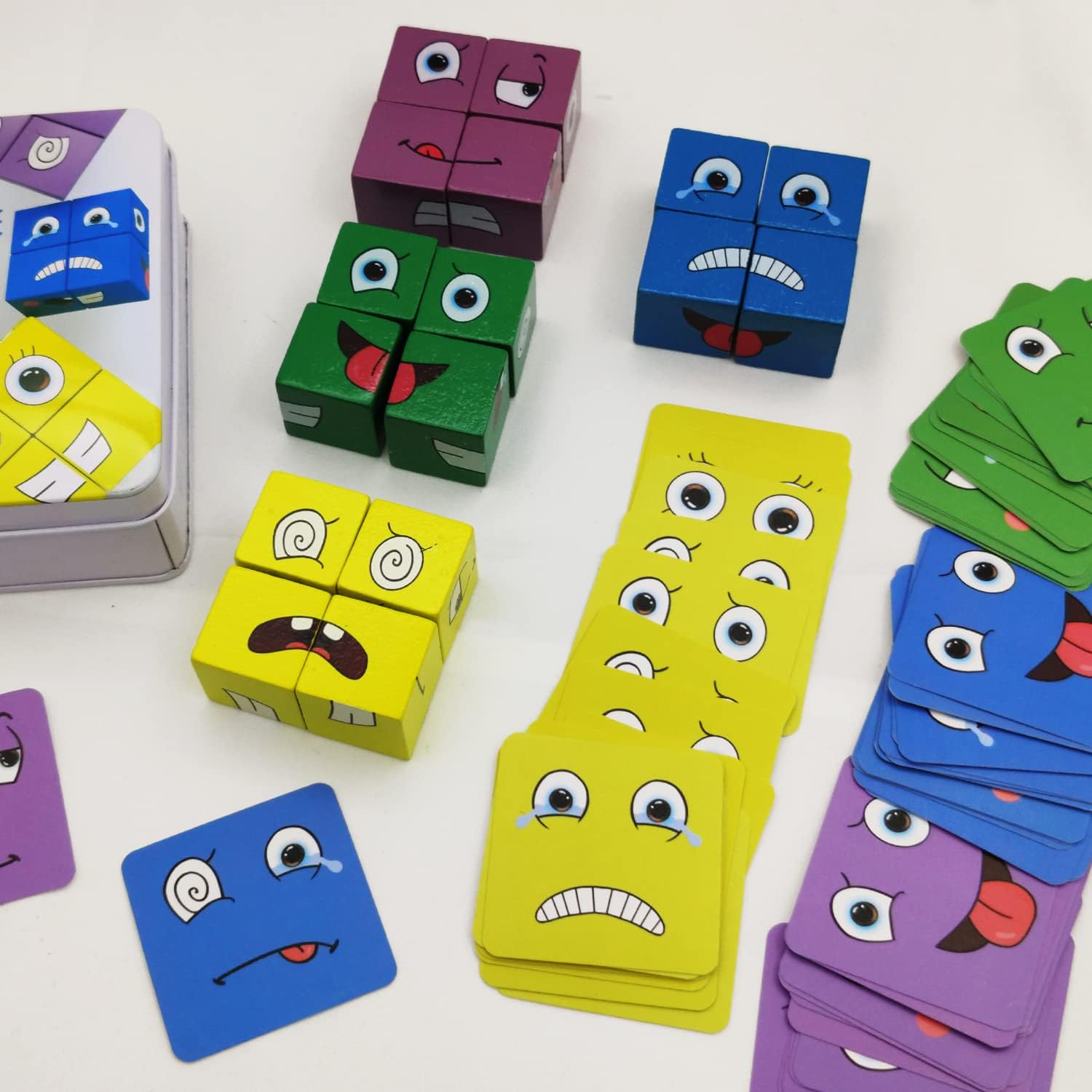 – كل مكعب يحتوي على أوجهه مجموعة من تعابير الوجه و العينين و الفم👀