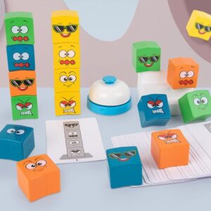 – أربعة مجموعات من المكعبات التي تحتوي على تعابير وجه مختلفة