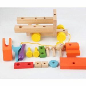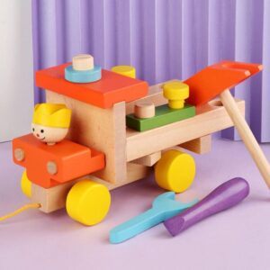 – قطع خشبية مع مطرقة و مفك براغي